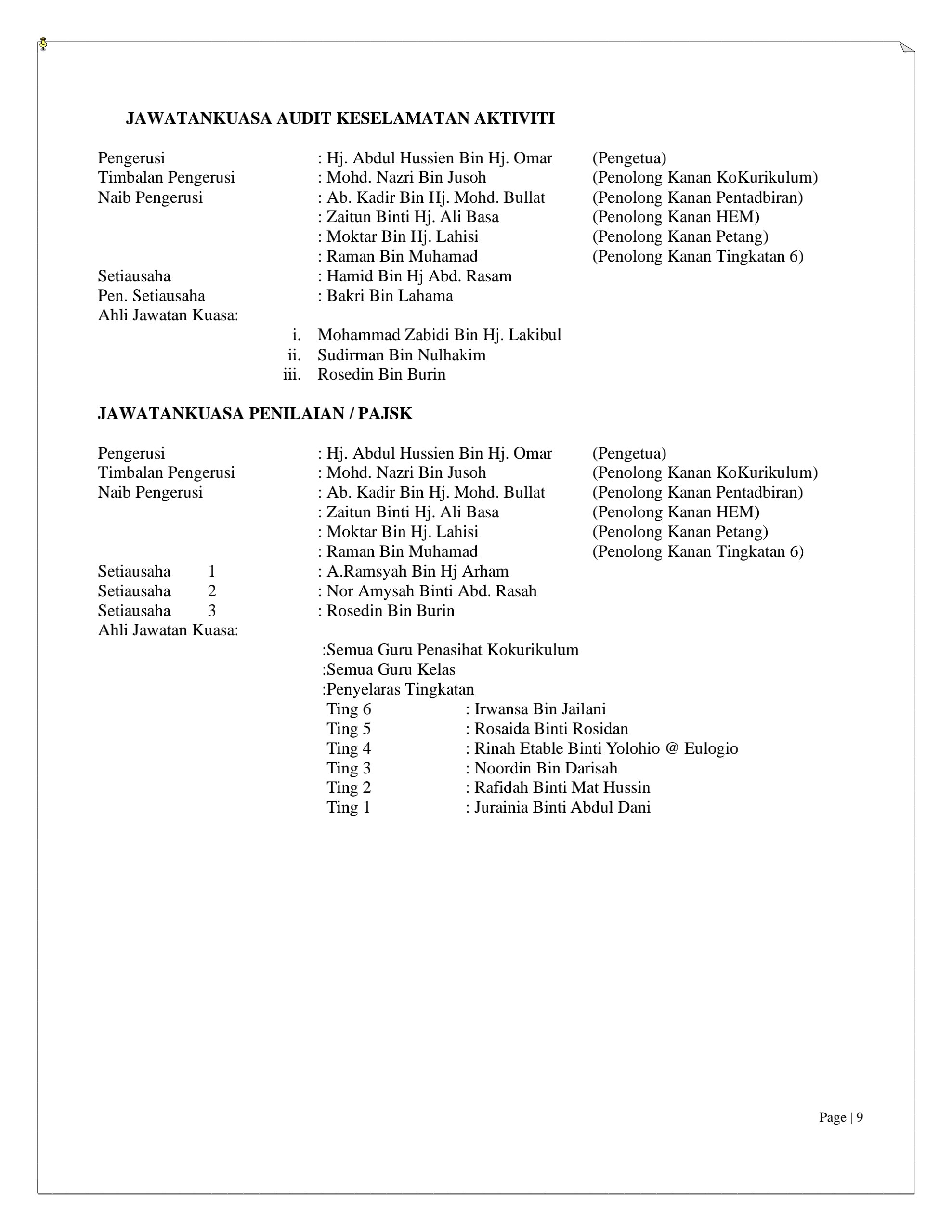 JAWATANKUASA INDUK UNIT KOKURIKULUM 2022